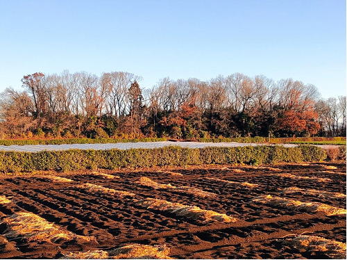 | 自宅から5分も歩くと、昔ながらの風景。 雑木林の手前に、畑が広がります。 | ||